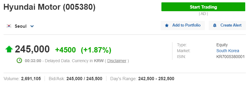 3일 기준 기아자동차 주가가 장중 10만원을 넘어섰는데 이 수치가