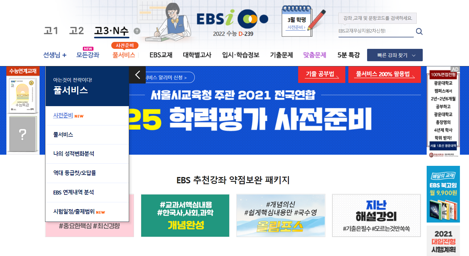 이베에스 고등 풀서비스는 성적 변화 분석, 등급컷, 수험생들이 가장 많이 틀리는 문항 같은 정보를 풀로 제공하는 서비스입니다.