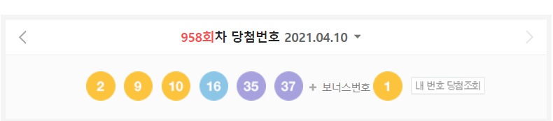 로또당첨번호 조회 958회