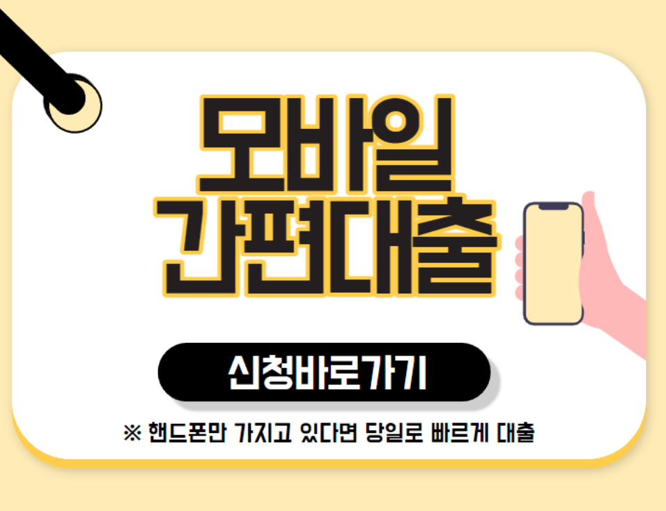 모바일 간편대출은 대출을 받으러 갈수 없었던 분들을 위해 방문하지 않고도 핸드폰만 가지고 있다면 해당 상품을 통해 당일로 빠르게 대출 받을수있는 상품입니다.