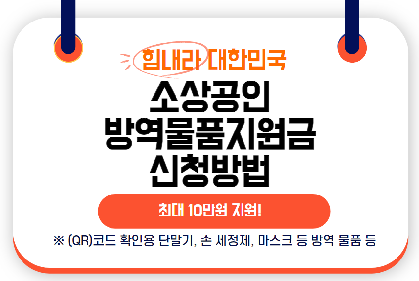 코로나로 고통받은 소상공인들의 위한 방역물품지원금 10만원 지급이 시작됩니다. 중소벤처기업부는 2021년 12월 3일 이후 사들인 방역물품 구매 영수증을 영업장 소재지 시·군·구 누리집을 통해 제출하면 구매 품목과 금액 확인 절차를 거쳐 방역물품지원금을 지급한다고 밝혔습니다.