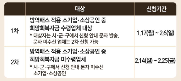 소상공인 2차 방역물품지원금 신청기간 :