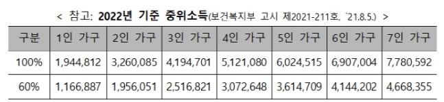 청년월세지원 중위 소득 기준