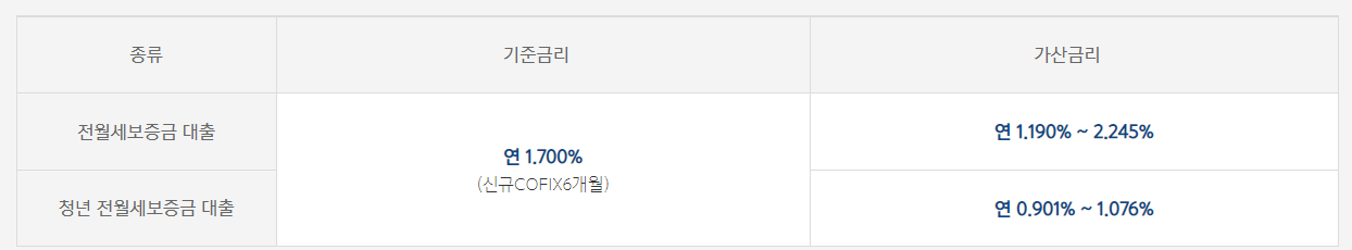 청년 전월세보증금 대출 : 연 2.601% ~ 2.776%