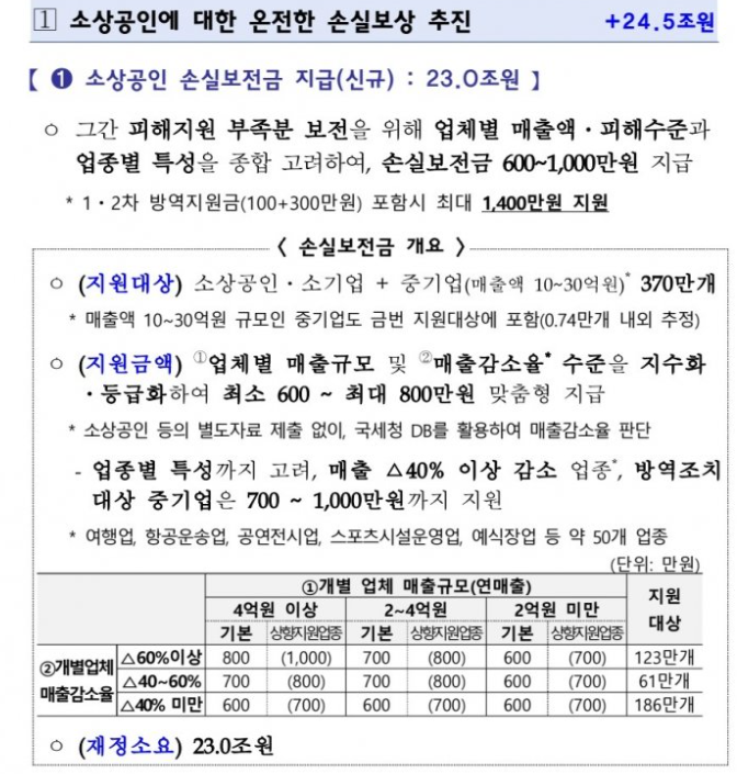 소상공인·자영업자 370만명에 '최소 600만원 ~ 최대 1000만원' 지원