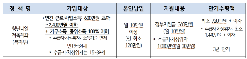 ※ 정부지원금을 전액 지원받기 위해서는 청년내일저축계좌에 가입하고 있는 3년간 통장을 유지하며 근로활동을 지속해야 합니다.