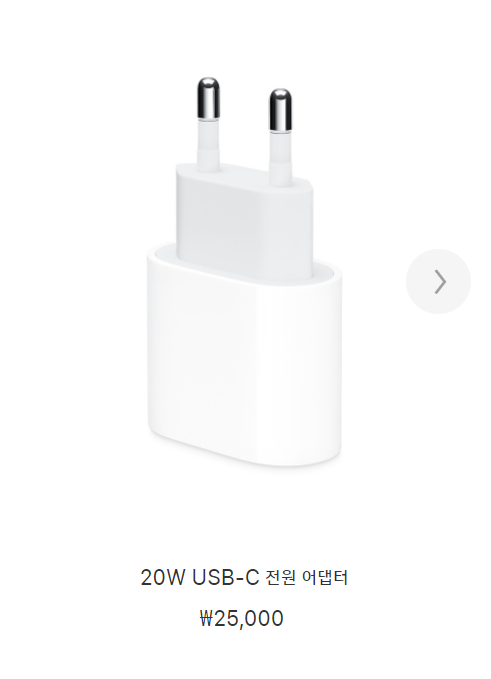 20W 충전기는 애플 공식스토어에서 가격 25000원에 판매되고 있다.