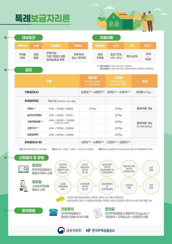기존 전세자금 대출 또는 보금자리론 등등의 금융상품은 소득 요건이 연 5000만~7000만원 이하로 책정돼 있어 제약이 많았지만 특례 보금자리론 상품은 신청에 별도로 소득 제한이 없어 많은 이들이 이용하기에 적합한 상품입니다.