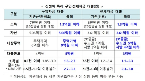 신생아 특례대출 대상 및 조건