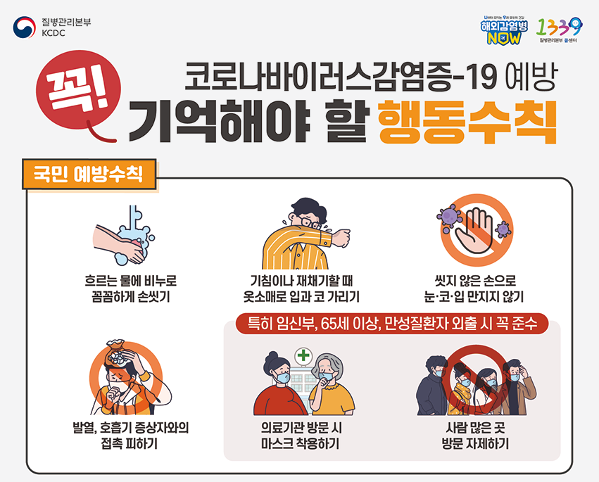 ☞ 손을 자주 씻기. 비누와 물 또는 알코올 성분의