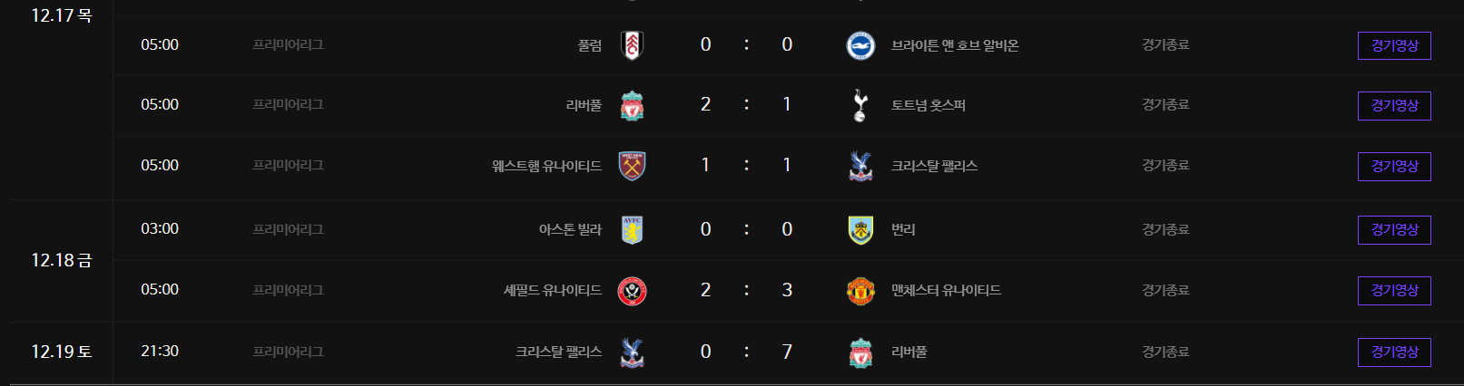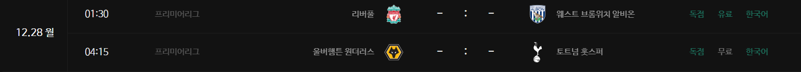일정을 통해 12월 프리미어리그 경기들의