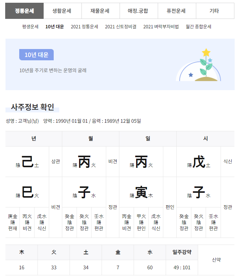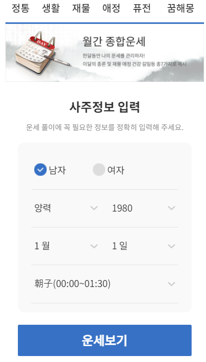 본인의 생년월일을 타 무료운세 사이트에서처럼