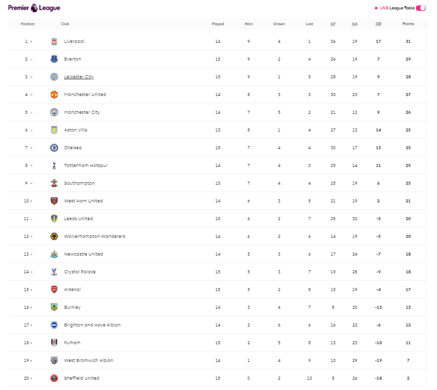 한동안 프리미어리그 1위를 유지하다가 2경기 연속 내리 패배해