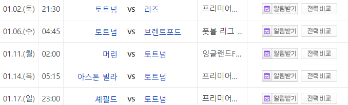 [토트넘 경기일정]