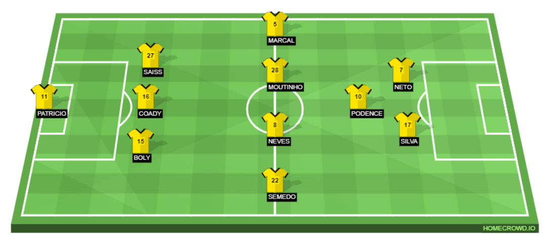 울버햄튼의 예상 라인업 (3-4-1-2)