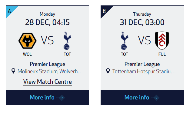 2020년 연말 토트넘 경기일정은 2경기가 남았다.