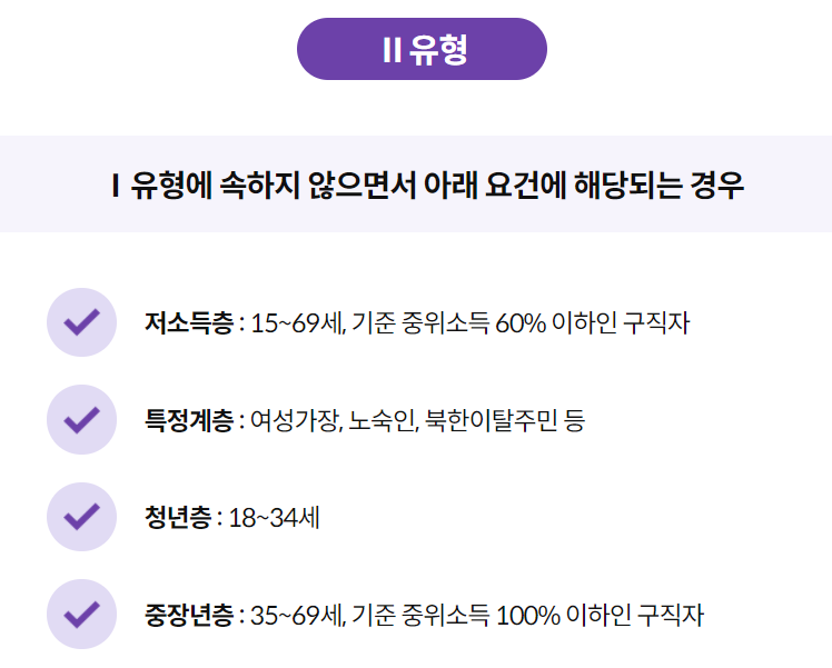 ● 중장년층 : 35~69세, 기준 중위소득 100% 이하인 구직자