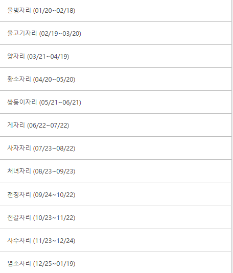 마지막 문제는 내가 태어난 날짜의 별자리를 선택하면