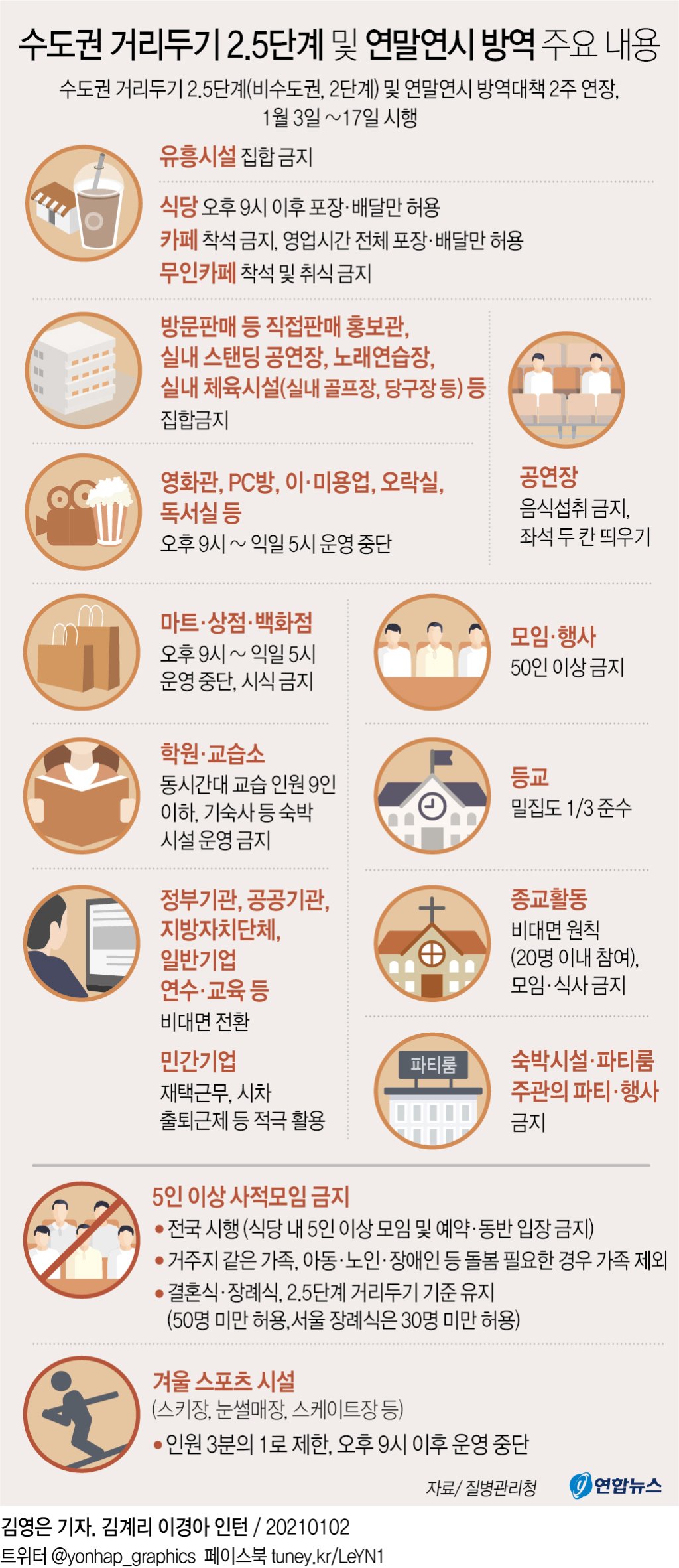 (수용 가능 인원의 3분의 1로 인원 제한, 21시 이후 운영 중단)