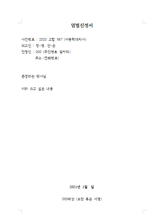 라고 글을 남기며 '엄벌 진정서' 양식을 다운로드할 수 있게 해 놨다.