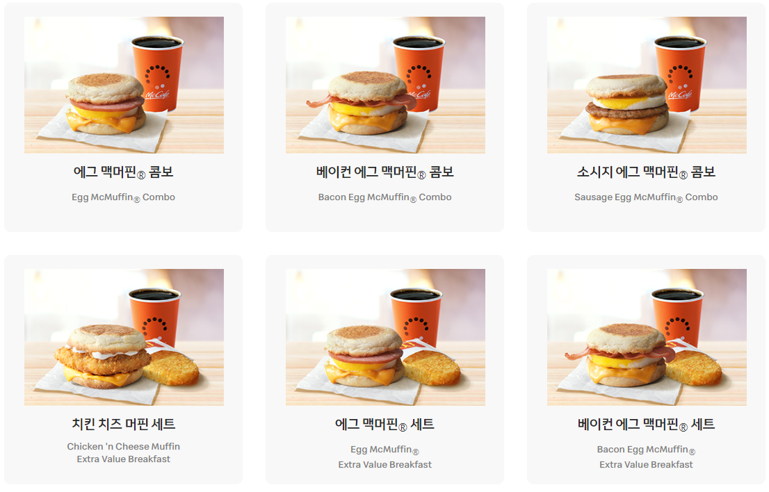 에그 맥머핀 콤보, 베이컨 에그 맥머핀 콤보, 소시지 에그 맥머핀 콤보,