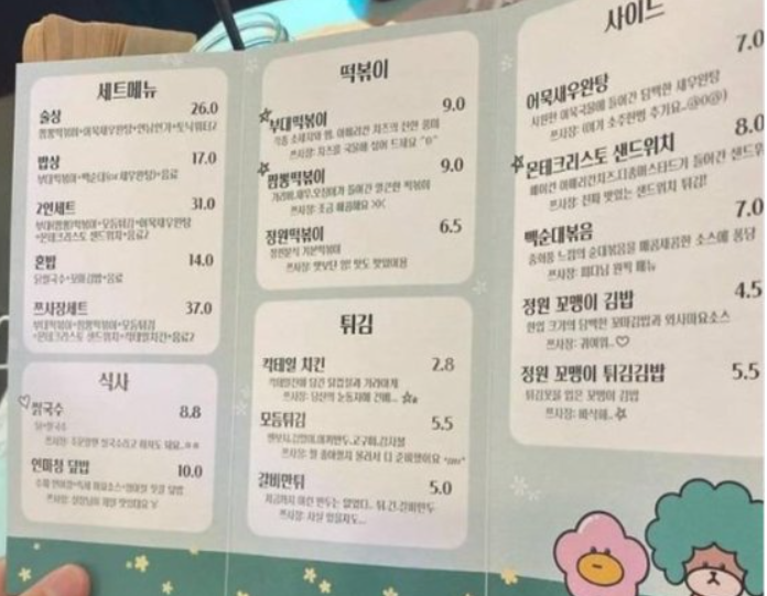 전체적으로 분식집 메뉴 치고 조금 비싼 가격에 속한 것 같다.