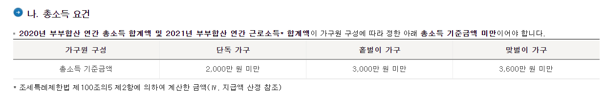 2021 근로장려금 신청 자격 소득기준