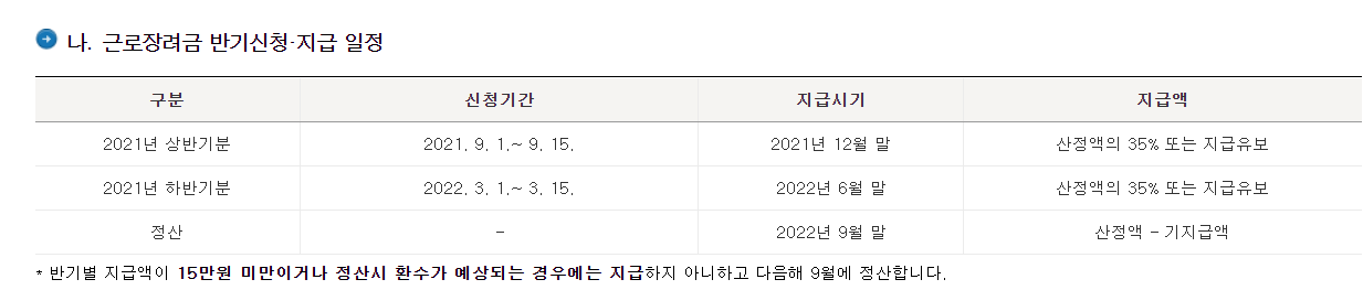 2021 근로장려금 신청은 정기 지급방식과 반기 지급방식 둘 중 하나를 선택하면 됩니다. 정기 신청은 기한 이후 추가 신청이 가능하나 반기 신청은 기한이 지나면 신청이 불가합니다.